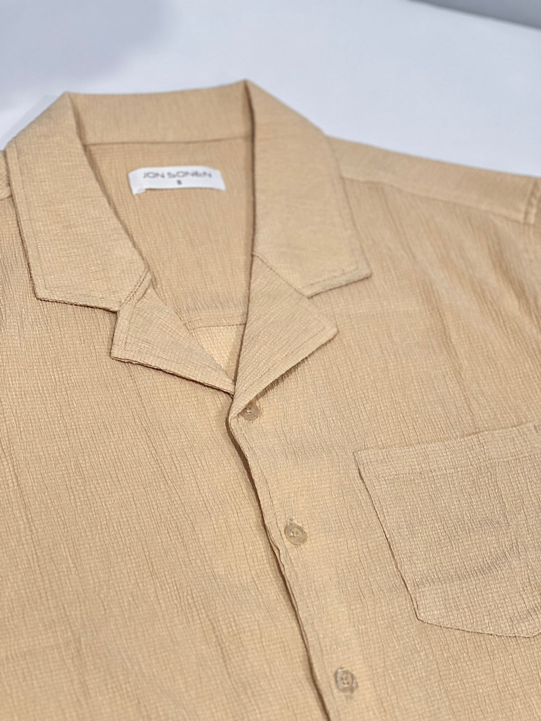 Diseñada para quienes buscan estilo sin esfuerzo, esta camisa beige combina un look relajado con elegancia natural. Su textura sutil y el cuello cubano aportan un toque moderno, mientras que su tela liviana y fresca la hacen perfecta para los días cálidos o escapadas al aire libre.