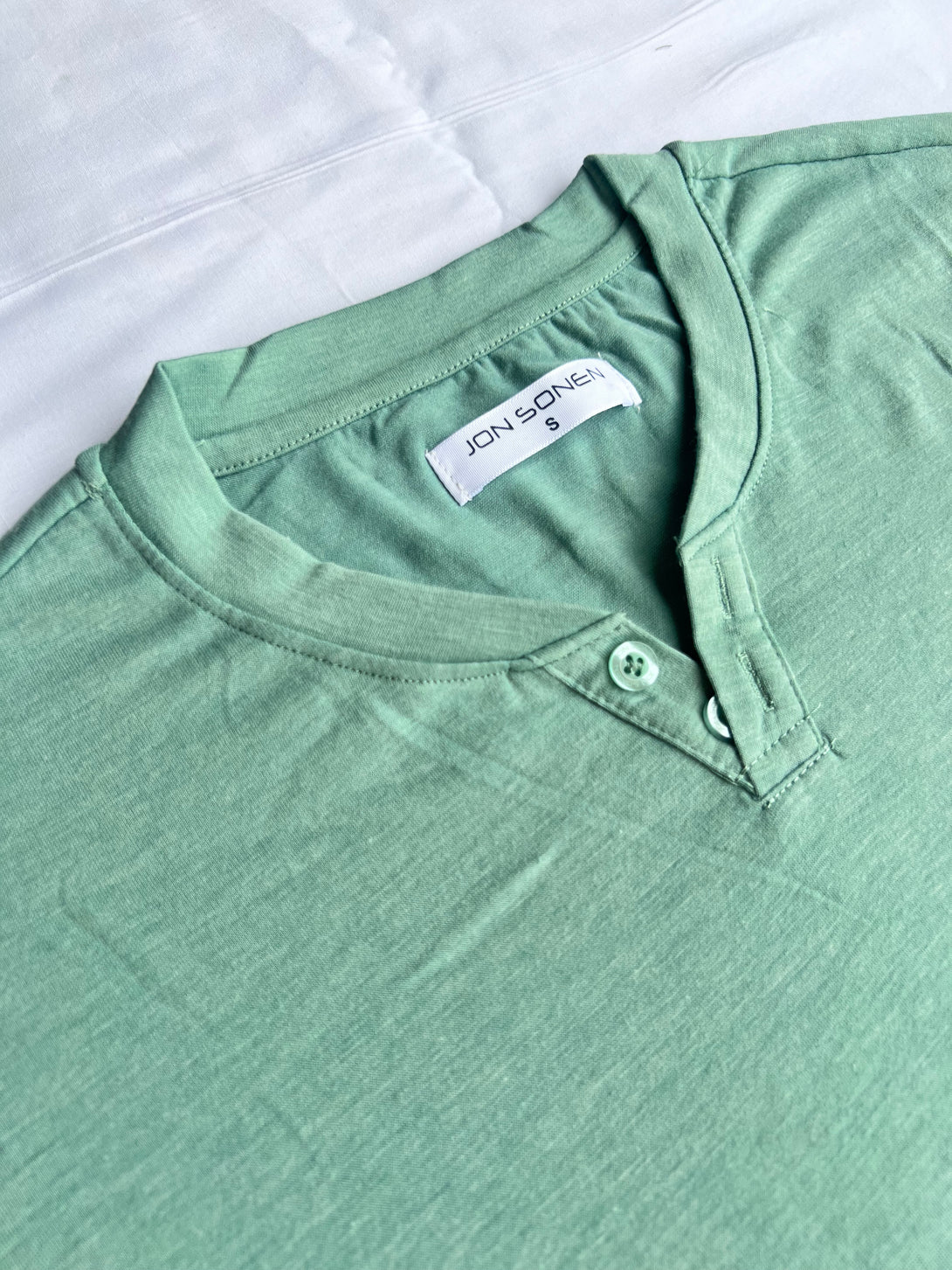 Disfruta de la comodidad y el estilo con esta camiseta básica de cuello V con detalle de botón. Confeccionada en una mezcla de 65% poliéster y 35% viscosa, ofrece una textura suave y fresca al tacto, ideal para los días cálidos o para usar bajo chaquetas livianas. Su diseño minimalista y moderno se adapta perfectamente a cualquier ocasión casual, manteniendo un look relajado pero elegante.